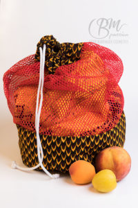 Sac à provisions filet et tissus wax, fruits et légumes ou pain. Longueur 30cm, largeur 30cm